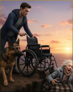 A young man, dressed to the nines in a sleek designer suit, pushed his frail, elderly mother in a wheelchair toward the edge of Blackwood Cliff. She was wrapped in nothing but a thin shawl, her frail frame barely visible beneath the fabric. Her once vibrant eyes were now dull with age, her hands shaking slightly as they gripped the armrests of the chair. She looked up at her son, her gaze filled with a mixture of love and worry.