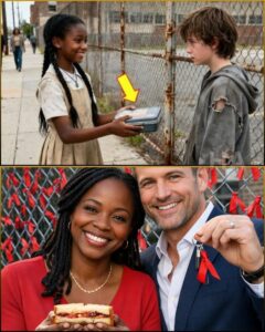 The end came on a day that looked ordinary until it wasn’t. The teacher who had quietly helped Naomi told her there would be one last lunch, because the system had finally noticed Isaiah’s absence and a foster placement had been arranged. Naomi panicked like she was losing oxygen. That morning she packed everything she could fit, sandwiches, cookies, fruit, crackers, anything her family could spare, and she carried it to the fence like she was delivering a lifeline. Isaiah ate slowly for the first time, not because he wasn’t hungry, but because he wanted the moment to last. Naomi fidgeted with the red ribbon in her hair, fingers twisting it like it could tie time in place. “I don’t want you to forget me,” she whispered, and Isaiah’s eyes went wet immediately. Naomi tore the ribbon in half with careful hands and tied one piece around Isaiah’s wrist, her knots clumsy but determined. She kept the other half and pressed it against her chest like a secret. Isaiah stared at the ribbon on his skin as if it had branded him with purpose. “I’ll come back,” he promised, voice fierce. “When I’m rich, I’m going to find you, and I’m going to marry you.” Naomi laughed through tears and said, “Okay, future rich boy,” but she tucked her half of the ribbon away like she believed him more than she wanted to admit.