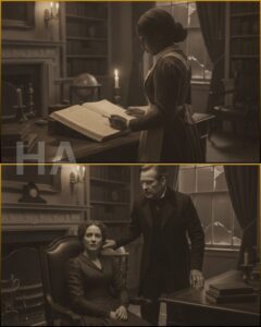 One late night, when the household was set in sleep and the moon had thrown glass across the study windows, she passed by Thomas Belmont’s door. The door was ajar, not locked—an invitation born of thoughtless habit. Curiosity moved her feet. She stood in the dim light and read. The ledger was not poetry. It was neat columns of names and numbers, the language of industry and control. Lines recorded lashes and rations. Names she recognized: Little Samuel, punished for visiting his wife before she’d been sold; Rachel, lashed for falling ill in the field; numbers that sounded like the beating out of any human dignity.