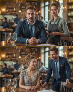 That was when a waitress approached, not with the careful sympathy of the staff who had been watching the slow-motion wreck, but with a brightness that cut through his embarrassment like a match in a dark room.