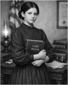 Elias stared at her as if he wanted to argue, to insist he still mattered. Clara turned away from him, and her gaze snagged on the shelf by the wall where a few old books sat, their spines cracked from neglect. They were her mother’s, mostly hymns and a Bible. But one book, thick and brown, had belonged to her grandfather, a man who’d once tried to be a lawyer back east before the West swallowed him. Clara had found it two years ago and read it in secret by candlelight, not because she dreamed of courtrooms, but because words were the only weapons she had ever been offered.