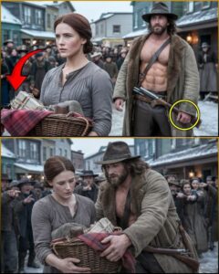 On the raised platform at the edge of Redwood Crossing’s dusty main street, Clara Bennett stood so still she might’ve been carved from the same sun-bleached timber beneath her boots. Only the tremor in her fingers betrayed her. Her little brother, Eli, clung to her skirt with both hands, as if the fabric were the last thing tethering him to life.