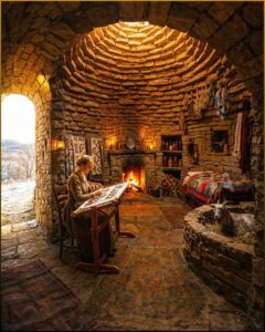 The rush mats were clean. The hearth burned steady. Herbs hung drying in fragrant bundles. Shelves held preserves, cornmeal, beans, and neatly folded cloth. The curved stone overhead gave the room a solemn grace no carpenter’s ceiling could match. It did not look desperate. That was the wound. It looked deliberate.