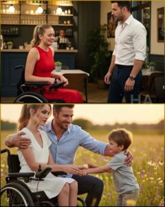 She backed up, gripping her wheels as if the chair itself might bolt. Her breathing turned ragged, shallow, the beginning of panic. Heads turned. A couple at the next table pretended not to stare while staring anyway.