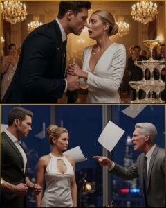 Gasps froze the air. The world stopped. For a heartbeat, it was chaos wrapped in silence — her stunned body against his, the taste of champagne and something else.