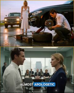 The following morning, Ryan was at Murphy’s Auto Repair, his hands elbow-deep in the grease of a Honda Civic, when Amy walked in. Gone was the drenched woman on the side of Route 9, replaced by a confident woman in a sharp blue dress, carrying two cups of coffee. “Wanted to thank you properly,” she said, offering one of the cups to him.