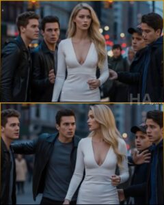 The tallest of the three leaned in slightly, hood up even though the air was mild. He spoke with a smoothness that wasn’t kindness. It was the tone of someone who’d learned how to make cruelty sound casual.