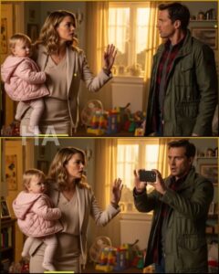 She stepped past him. “I’m not here to lecture you.” The words fell oddly soft for someone whose name had become a corporate adjective. She glanced once toward the hallway, where a small voice had already started to ask questions. Rainwater pooled near her shoes on the doormat, and when she took in the scattered crayons, the toy truck with a missing wheel, the small pink backpack slumped against the couch, she did not look annoyed. She looked, for the first time, very curious.