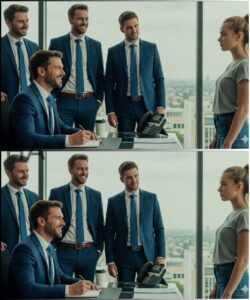 Five executives in sharp suits leaned back in leather chairs, relaxed in the way men relax when they believe the room belongs to them. Their watches caught the light. Their cufflinks flashed. The long table shone like a mirror polished by people who were paid not to leave fingerprints.