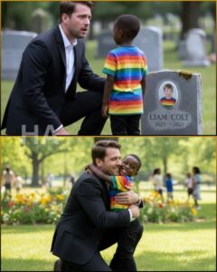 He hadn’t cried in over a year, and he wasn’t about to start again. Not here, not where every whisper of wind sounded like his own guilt. He knelt to fix the flowers, the bouquet slipping from his hand, and that’s when he heard footsteps behind him—small, quick ones.