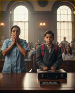 Maria clasped her phone tightly. The screen showed no missed calls. No messages. Ethan was supposed to be in class at Roosevelt Elementary, sitting in his third-grade seat, pencil in hand. Her sister Rosa would pick him up later. He didn’t know about the hearing. Maria had made sure of that.