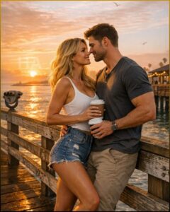 I grabbed two cups from the corner shop and walked down to the water. The sky was still gray, edged with pink. Brooke stood by the railing in a jacket, hair pinned back against the wind, looking like she’d stepped out of the dawn itself.