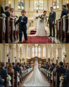 Tommy’s voice, though soft, rang out clear and loud, cutting through the tension in the room. “She’s lying. She already has a husband and a kid. I saw her.” The entire church seemed to hold its breath. The guests were frozen, eyes wide in disbelief.