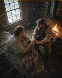 The fire became the cabin’s heart. Every chore circled it. Every thought returned to wood, heat, food. Elias rationed with grim precision. Clarabel stretched flour into biscuits so dense they could have been used to repair a wagon wheel. She made broth thin enough to see the bottom of the bowl and pretended not to be hungry.