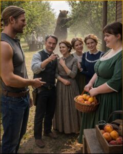 By noon, Red Hollow was wild with celebration. Caleb brought the bear’s claw to town as proof. Nathan Bellamy stood once again on the platform with his three polished daughters displayed behind him. Vivienne looked serene and expectant. Margaret stood far at the back of the crowd because Tom had insisted her father wanted her present.