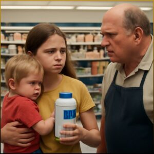 The small supermarket on the outskirts of Willowbrook was usually quiet at dusk. However, today the stillness had an unusual intensity. At the center of this silence was nine-year-old Kayla, hugging her little brother tightly in one arm and clutching a carton of milk in the other.