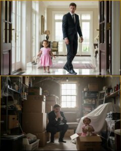 He crouched slowly, suit creasing at the knees. The hallway smelled faintly of lemon polish and the clean emptiness he paid for. Luna’s hair smelled like baby shampoo, cheap and sweet.