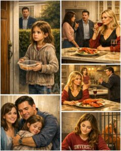 He didn’t answer. His gaze moved past her, toward the back door where Lucia hovered, half-hidden, clutching the foil container like a secret.