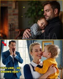 Ethan Rowan stood where the stairwell curved into the living room, his son pressed against his chest, his expensive suit wrinkled, his jaw unshaven. Eighteen-month-old Leo bucked and wailed, little fingers fisted in Ethan’s shirt. Three nannies had quit in a month; the fourth had just fled with tearful apologies. The walls were flawless. The silence, when it dared to fall, was worse.