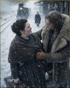 Something hot and blinding flashed through her, but years of discipline held it in place. She did not weep. She did not plead. She did not ask him to be kinder than he was. She simply stood there, wide-shouldered and travel-worn and already too familiar with this kind of moment, while the Wyoming wind wrapped itself around the platform like a witness.