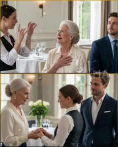 Around them, heads were beginning to turn. Not rudely, not yet, but enough that the shift in the table’s energy became its own quiet spectacle. The billionaire’s mother was animated, smiling, signing rapidly to a young waitress who had transformed from background staff into the axis of the lunch.