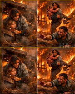 Hazel slid onto the dirt, ignoring the heat radiating through the metal above them, and reached carefully toward Junie. “Hey,” she said, voice low, coaxing. “It’s me. You’re not alone.” Junie’s eyes were wild, fixed on the shed doorway where smoke curled like fingers. “It’s coming,” Junie whispered. “It’s coming like before.” Hazel’s throat tightened, because she knew Junie wasn’t only talking about this fire; she was talking about every fire that had ever stolen breath and safety. “Look at me,” Hazel said, taking Junie’s sooty hands in her own. “Breathe with me. In. Out. You remember how.” Junie trembled, but she followed, because the body wants permission to live, and Hazel was giving it. Outside, wind howled, and embers began to skitter across the ground like tiny, malicious insects.