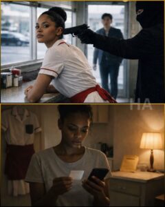She placed the coffee pot down as if it deserved to land properly. She set both hands flat on the counter and looked at the gunman the way you look at rain when you’ve already been soaked through: not afraid, not surprised, just… tired of pretending you can negotiate with weather.