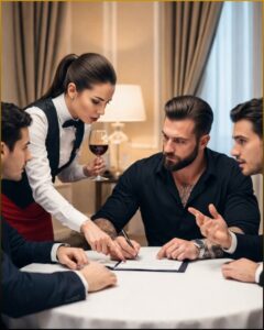 Vincent gave a brittle laugh. “With respect, I don’t think the waitstaff has been invited into contract analysis.”