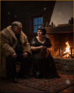 Silence filled the cabin, thick and awkward, not romantic, not easy. The fire popped. Snow hissed against the window.