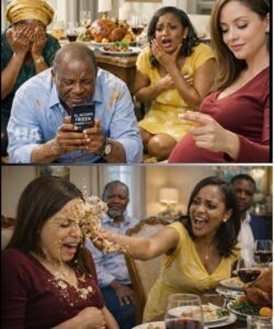 The food hit Elena’s face with a wet slap, warm and humiliating. Gravy slid down her cheek. Turkey clung to her hair.