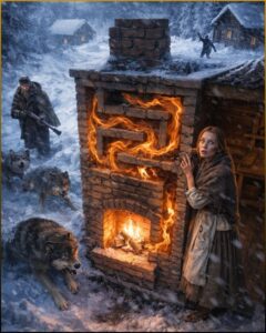 That thought arrived so suddenly it felt less like invention than recognition. She had seen warmth held before. Not in Dakota, not in a shack, not in this fast-burning American iron box, but years earlier in her grandmother’s house in eastern Ohio. Her mother’s people had been Pennsylvania Dutch, practical and quiet and suspicious of waste. In the center of that old house stood a great masonry stove whitewashed smooth, broad as a wardrobe and warm for hours after the flames died. As a girl, Clara had slept on a pallet near it in winter and woken in the dark pressing her palms to plaster that still held morning.