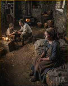 They reached the Whitaker barn as the sky darkened again and the wind began to sharpen. Ada had laid extra pallets on the floor and heated stones near the hearth to tuck by Silas’s feet. Noah stood by the ladder ready to take bundles. Rose held a lamp with both hands, solemn as a nurse.