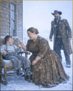 “Miss Hayward,” Silas said, his tone not unkind but dead practical, “I drove two days through a blizzard because there ain’t another soul between Cheyenne and Red Willow willing to come to this ranch. The boy screams at night. The father don’t speak much at all. The last woman cried for a week and left on a supply wagon.”