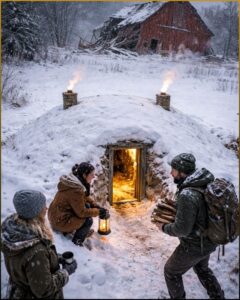 She worked all day, then worked by porch light until her shoulders trembled. She hauled dirt in buckets and a rusting wheelbarrow whose left handle had been repaired twice with duct tape and one stubborn bolt. She laid down gravel for drainage. She used heavy plastic sheeting, insulation bought in small amounts from Troy’s store, and pressure-treated boards scavenged from a barn teardown twenty miles away. She framed the walls, braced the ceiling, and packed soil back over the top in layers, shaping it so drifting snow would help insulate rather than crush. She cut a narrow entrance, built a thick hatch, installed a hand-crank vent and a short, carefully shielded stove pipe after reading survival forums and old homesteading manuals half the night for two weeks straight.