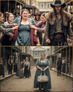 They tore her dress apart in the middle of Main Street, laughing as the fabric split and the seams surrendered, one humiliating inch at a time. Buttons popped loose and skipped across the dirt like broken promises, bouncing against boots that didn’t move. Eleanor Brooks stood with her arms crossed over her chest, trembling in her threadbare undergarments while the whole town of Red Pine Crossing watched her become a lesson. The women who destroyed her only dress smiled with the bright satisfaction of people who believed cruelty was the same thing as order. The men looked away, embarrassed or disgusted, as if her body was the offense instead of the hands that had torn cloth from it. Nobody defended her. Nobody offered a coat. Nobody said her name like it mattered.