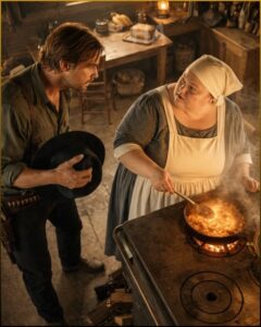 He should have sent her away. Every practical instinct said to do exactly that. A woman alone on the road brought trouble with her, even if none of it was her fault. And yet the cabin felt different with the lamp lit, with stew simmering, with another voice in the room. Less like a crypt. Less like the place where his life had ended and he had simply forgotten to lie down.