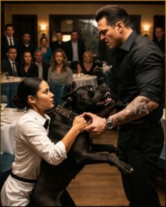 It happened too fast for thought and too violently for language. One moment the dog was at Roman’s feet. The next he was airborne, roaring with a sound that did not belong in a dining room full of white linen and Baccarat stemware. Chairs crashed backward. Someone screamed. Roman’s men drew weapons in a blur, but nobody fired because Roman was still there and so were twenty civilians and the dog was moving like a black storm with teeth.