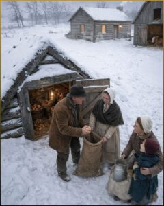 One evening, after the first sharp night wind had needled through the chinks of the cabin, Margaret sat at the table mending a sleeve while Will read aloud from his book. Clara had fallen asleep on a bench with her doll made from an old stocking. The stove burned, but the air beyond its reach was already cooling. Then Margaret saw Will’s breath plume white for an instant when he exhaled over the page.