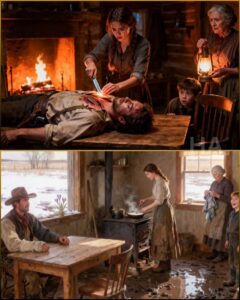 Inside, her mother, Emma, stood near the hearth, hands deep in flour from kneading bread that would never quite rise right in this cold. Daniel sat at the table, hunched over a scrap of wood, trying to whittle with a butter knife.
