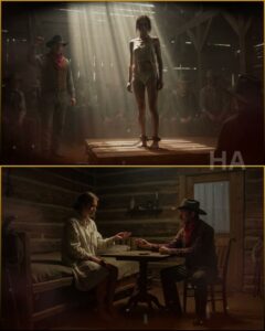 Chains dragged across rough planks, a thin scrape that made the men in the crowd grin as if it were music. Then the whip cracked, not to strike, not this time, but to remind everyone who held the rhythm in this barn.