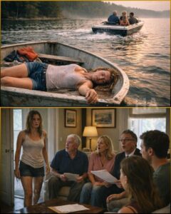 You set yourself a rule, because rules are scaffolding when everything else collapses. Nine hours. If no one comes in nine hours, then no one is coming at all, and the thought arrives with a cold clarity that makes your skin prickle. If your family planned to scare you into signing papers, they would circle back once you were desperate enough; if they planned to erase you, they would wait for the lake to do the work. You look down at Harper sipping water the way a child sips medicine, careful and obedient, and something hard forms behind your ribs. You don’t scream. You don’t waste air. You whisper instructions instead, small and manageable: sit low, stay shaded, sip only when you’re told, don’t put hands in the water, wave only if you see a boat. Harper nods like a soldier, and the sight breaks your heart in a way you don’t have time to feel. Then you write on the back of an old receipt from your wallet, pressing the pen so hard it nearly tears through: your name, Harper’s age, the date, what’s missing, what the note says, where you think you are. You tuck it beneath a bottle in the boat as a message for whatever future might find your absence. And when you finally look at the distant line of cliffs and sand, you make the decision that parents make when nobody is coming. You decide you will move first.