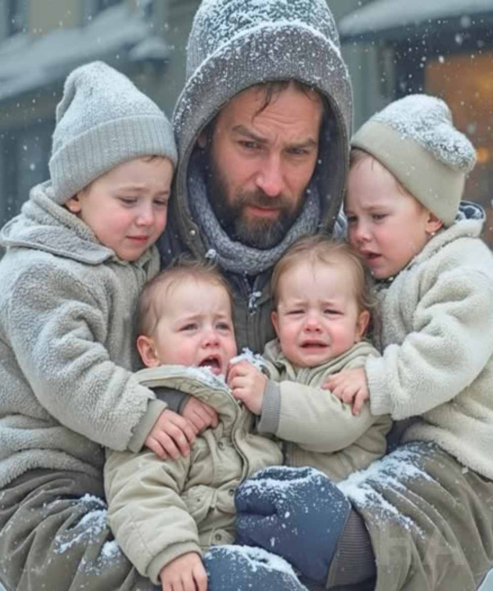 The oldest was a girl, maybe ten. Her hair was tangled, her face pale and streaked with dirt, but her arms were wrapped fiercely around a toddler—no more than two—holding him against her chest. Two boys, perhaps six and eight, pressed close on either side, their thin clothes soaked from melted snow.