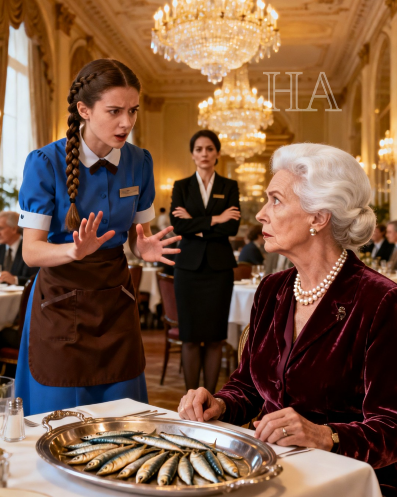 The elderly woman did not react to the clinking of glasses or the elegant murmur of the restaurant filled with wealthy businessmen and tourists, as if the noise of the world could not reach her.