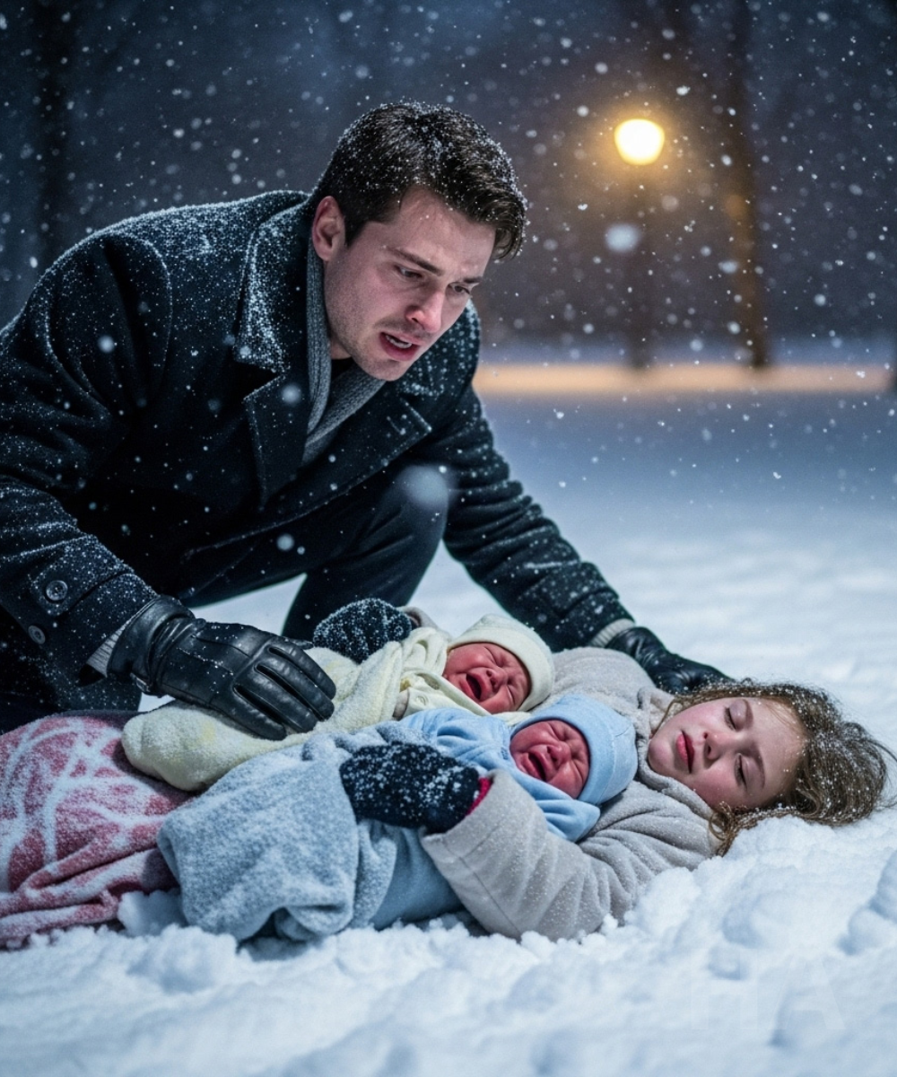Jack Morrison held the little girl tightly as he ran back to the car. His designer shoes slipped on the ice, but he didn’t stop. In his arms, the three tiny bodies trembled, and he could only think of one thing: I must save them .