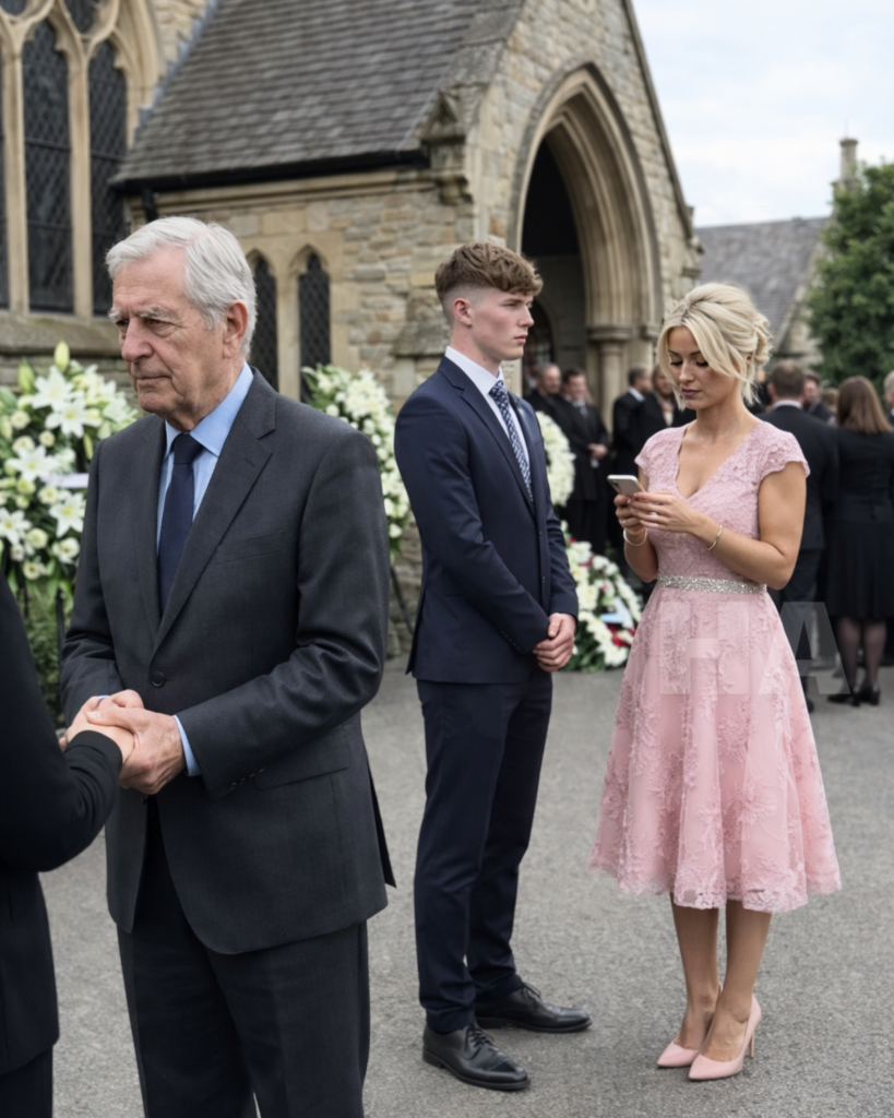She wore a coral dress, high heels, sparkling earrings—perfectly styled, as if she were attending a brunch, not a funeral. While others prayed, she checked her reflection in her phone, fixing her makeup, smoothing her hair, even smiling slightly when she thought no one noticed.