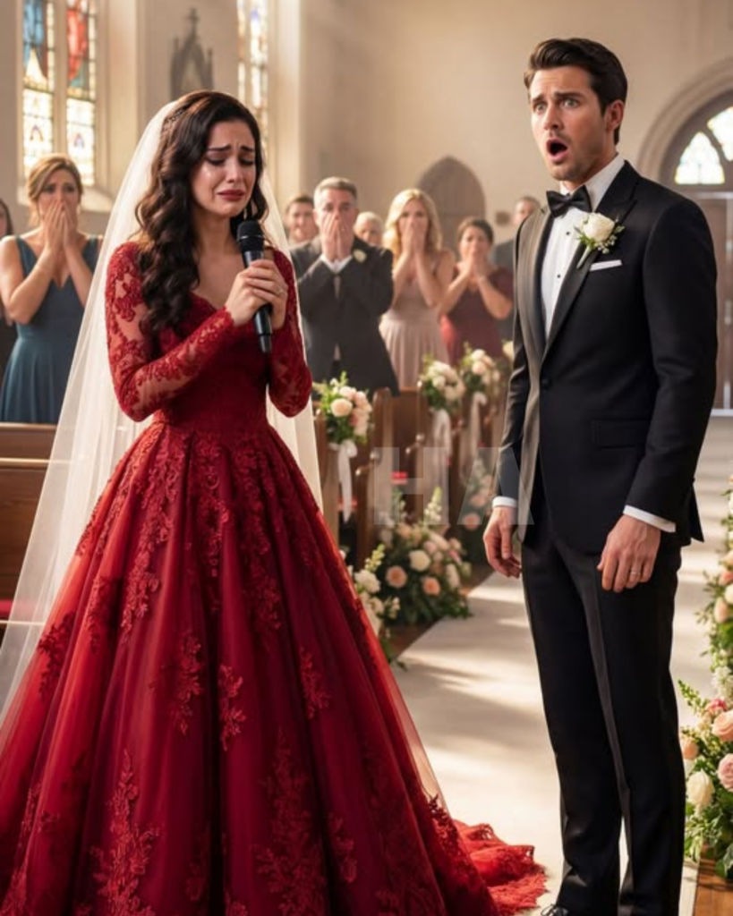 She Walked Into the Church in Blood-Red Silk Instead of White… Then Exposed Her Groom as Her Parents’ Killer Before the Vows Began