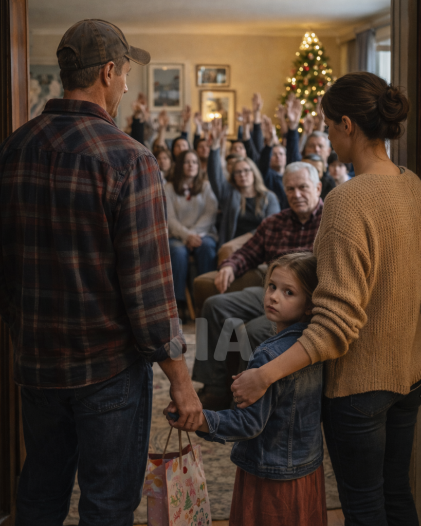 Grandpa didn’t answer him right away. He walked to the center of the living room and turned slowly, taking in the raised hands one by one. The Christmas tree lights blinked behind him, warm and stupidly cheerful, reflecting off ornaments your grandmother had hung for decades. The smell of ham and cloves and pine was still in the room, and somehow that made it all worse.