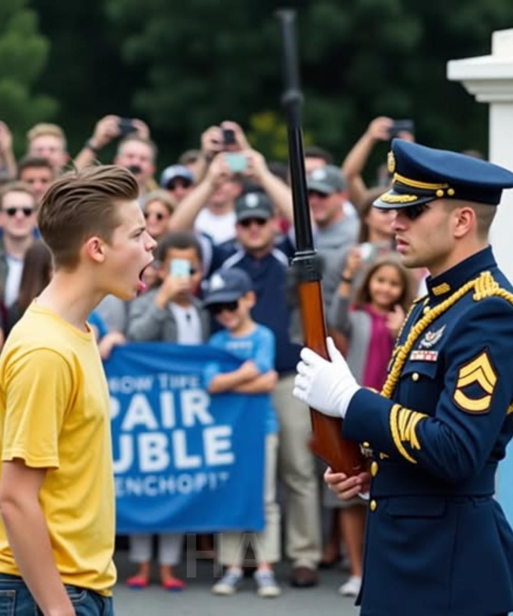 But the energy in the air had shifted, it wasn’t just disrespect, it was desecration. A mother stepped forward, whispering, someone stop him. This isn’t funny, that man’s guarding heroes.
