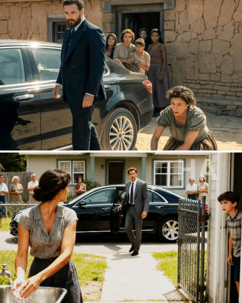 Children with chalk-stained knees stopped mid-game. An entire town paused as the car parked in front of her small, weather-beaten home. Elena’s heart thudded. People like that didn’t come to Cedar Street. The door opened. A tall man stepped out, his suit immaculate despite the dusty road. His hair was neatly styled, but there was something familiar in the way it fell over his forehead. He looked around slowly before his eyes landed on Elena. And in that moment, the world stilled. “Elena?” His voice was soft, tentative, as if afraid she might vanish. Her breath hitched. It was him. The man from the storm. The man she never told anyone about. The man who had kissed her with the promise of tomorrow and disappeared without explanation. Before she could respond, his gaze drifted to Jamie—who stood frozen, wide-eyed, toy airplane dangling from his hand. Adrian Cole—because that was the name he soon gave—stared at the boy as if seeing a ghost. Jamie’s dark hair curled just like his, the same dimple appeared when he bit his lip, and those green eyes—clear as emerald glass—left Adrian visibly shaken. He stepped forward, voice unsteady. “Is he… mine?”