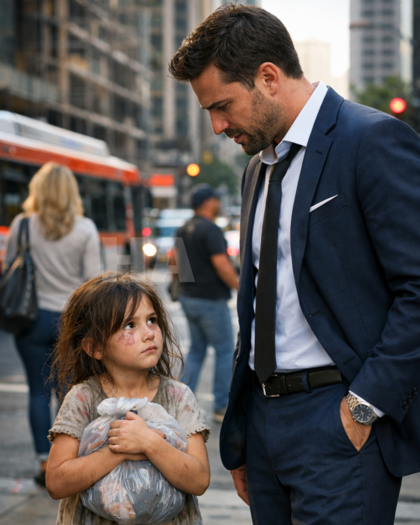 You kneel fully in front of her now, heedless of the dirt staining the knees of your tailored pants. Up close, she looks even smaller than she did standing on the sidewalk. Her fingers are chapped, her knuckles gray with dust, and yet she clutches that plastic bag with ceremonial devotion, like it contains the last rules of the universe.